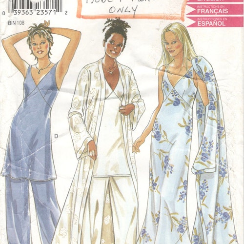 New Look 6929 1980s Or 90s Misses Nightgown Robe And Pants Etsy
